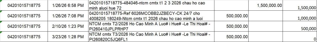 Em chưa thấy Chị đăng trong diễn đàn là chuyển tiền CMTX tháng 2 cho em chưa
