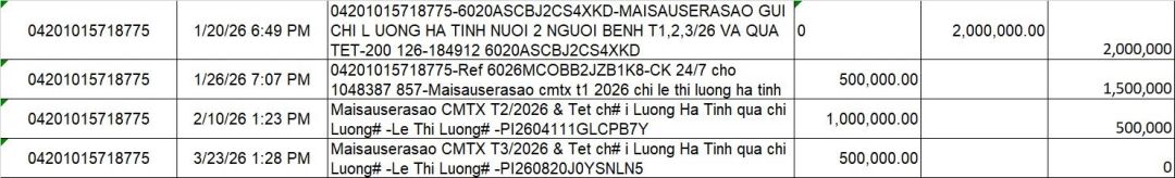 Vịt đã hoàn thành chuyển cmtx 3 tháng và tiền tết của Maisauserasao đến chị Lương.