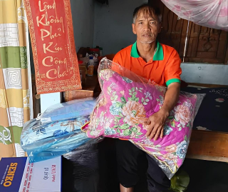 Chị Yến Nguyễn kết nối bà Hường 1.000.000 đồng mua chăn , màn, gối, quạt cho ông