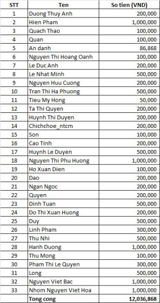 Chủ Đề: Re: Sao kê Quỹ Cơm - Cháo
