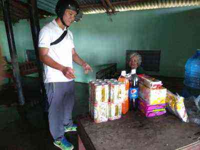 Cũng may có vợ chồng người con nuôi phụ giúp chăm sóc hai mẹ con. Mua chút quà cho mẹ con cụ để chia sẻ chút tình cảm của bạn bè.