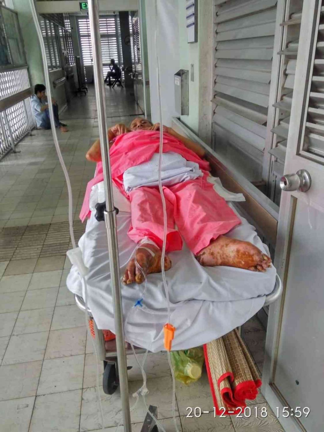 Anh Hiệp hiện nằm trước cửa phòng 1 Lầu 5 - Khoa Ngoại Tiết Niệu.