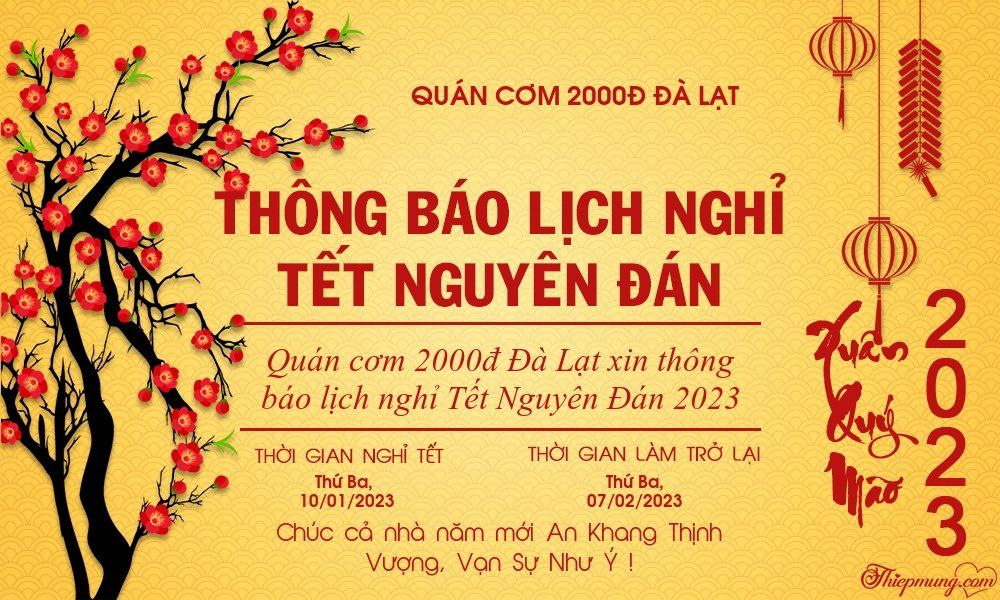 Quán cơm 2000đ Đà Lạt xin thông báo lịch nghỉ Tết Quý Mão như sau: