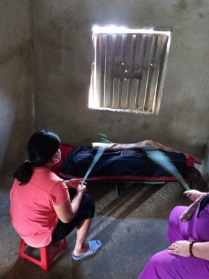 Vì gia đình nghèo nên hiện tại vẫn chưa mua được hòm chưa làm thủ tục liệm cho bà được. Và vì nhà không có tiền làm ma chay cộng với tình hình dịch ở thôn đang có chiều hướng phức tạp nên đại diện xã yêu cầu gia đình thu xếp đi quan sớm nên đám của bà dự kiến di quan vào lúc 8h sáng mai ngày 7/1/2022. Vì gấp nên nhóm xin đề xuất hỗ trợ đám của bà 5.000.000đ.