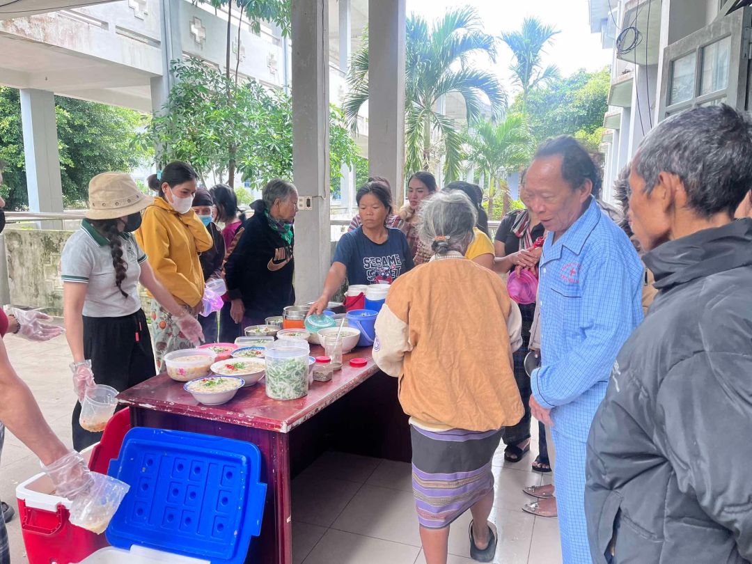 Bà con vui mừng và cháo được phát rất nhanh tại Trung tâm y tế A Lưới 10 h30 chủ nhật