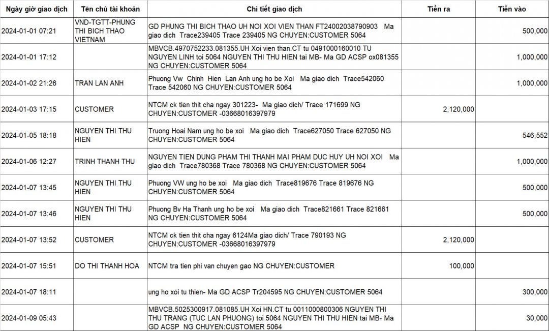 Tài khoản 5064 -MB Bank - Nguyễn Thi Thu Hiền vẫn tiếp tục nhận yêu thương của cả nhà.