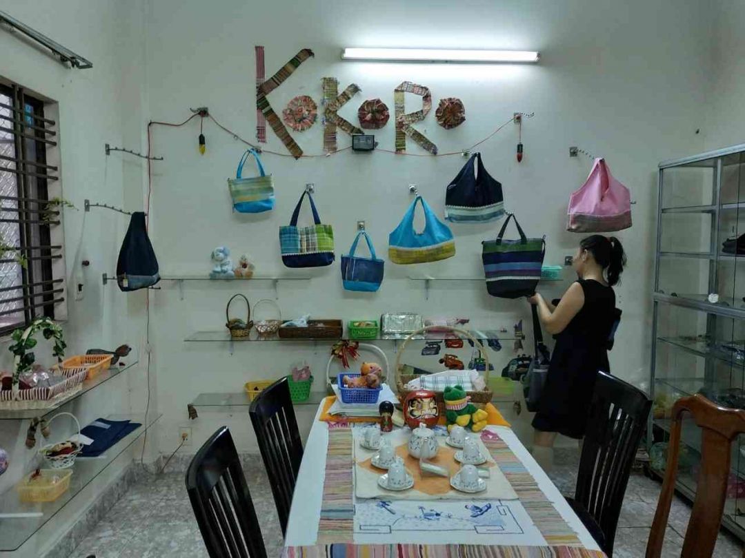Cơ sở được thành lập đã hơn 10 năm nay, do 3 cô thay phiên nhau phụ trách hỗ trợ công việc. Cơ sở đang dạy nghề dệt cho 18 bạn thiểu năng, có bạn đến từ nhiều quận huyện nằm cách xa nơi này. Buổi sáng, phụ huynh sẽ chở các bạn đến, buổi trưa & buổi xế sẽ được hỗ trợ ăn tại cơ sở.