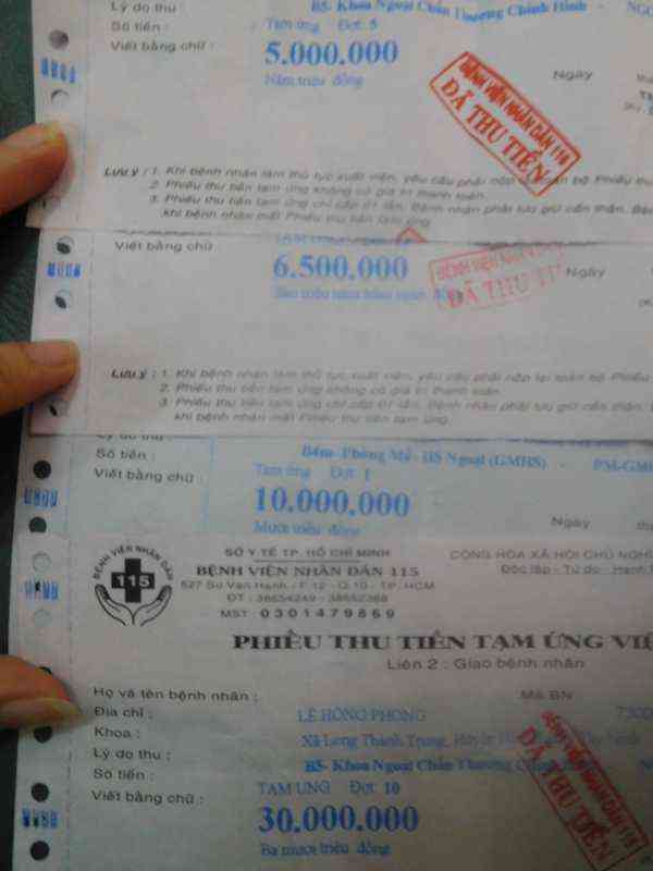 Hiện anh đang nằm ở phòng số 10 ,Khoa chấn thương chỉnh hình, Bệnh Viện 115 số 527 đường Sư Vạn Hạnh Phường 12 Quận 10.