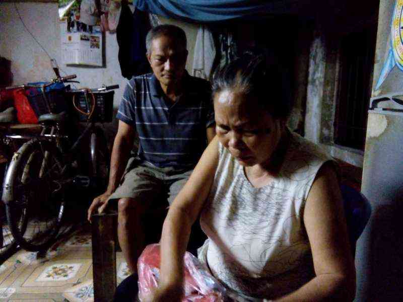 - Ông Hoàn năm nay 60 tuổi, bà Hoa 62 tuổi đang sống trong căn phòng 14 mét vuông, có gác xép nhưng đã bị mối mọt, có thể bị sập bất cứ lúc nào. Bà Hoa đã hai lần bị ngã do ván mục. Tường của căn phòng cũng đã nứt nẻ. Đồ dùng trong nhà không có gì giá trị lớn (ti vi, quạt, tủ lạnh đều do người khác cho mà có).