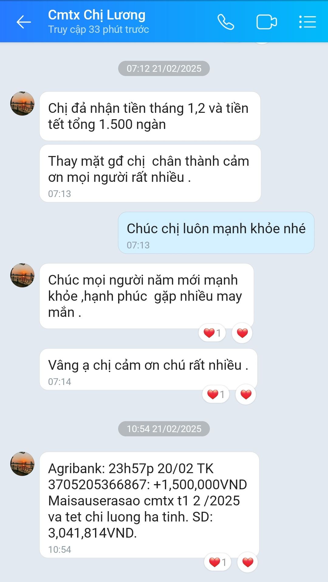 Vịt đã chuyển cmtx t10-11-12/2024 của Maisauserasao vào tài khoản chị Lương. Nhờ các bạn Hà Tĩnh cập nhật tình hình của gia đình chị ah.