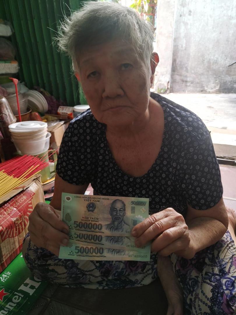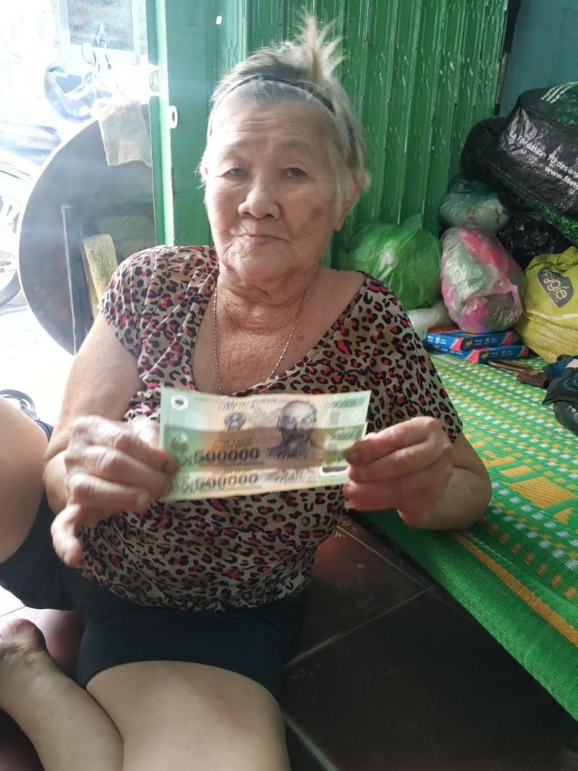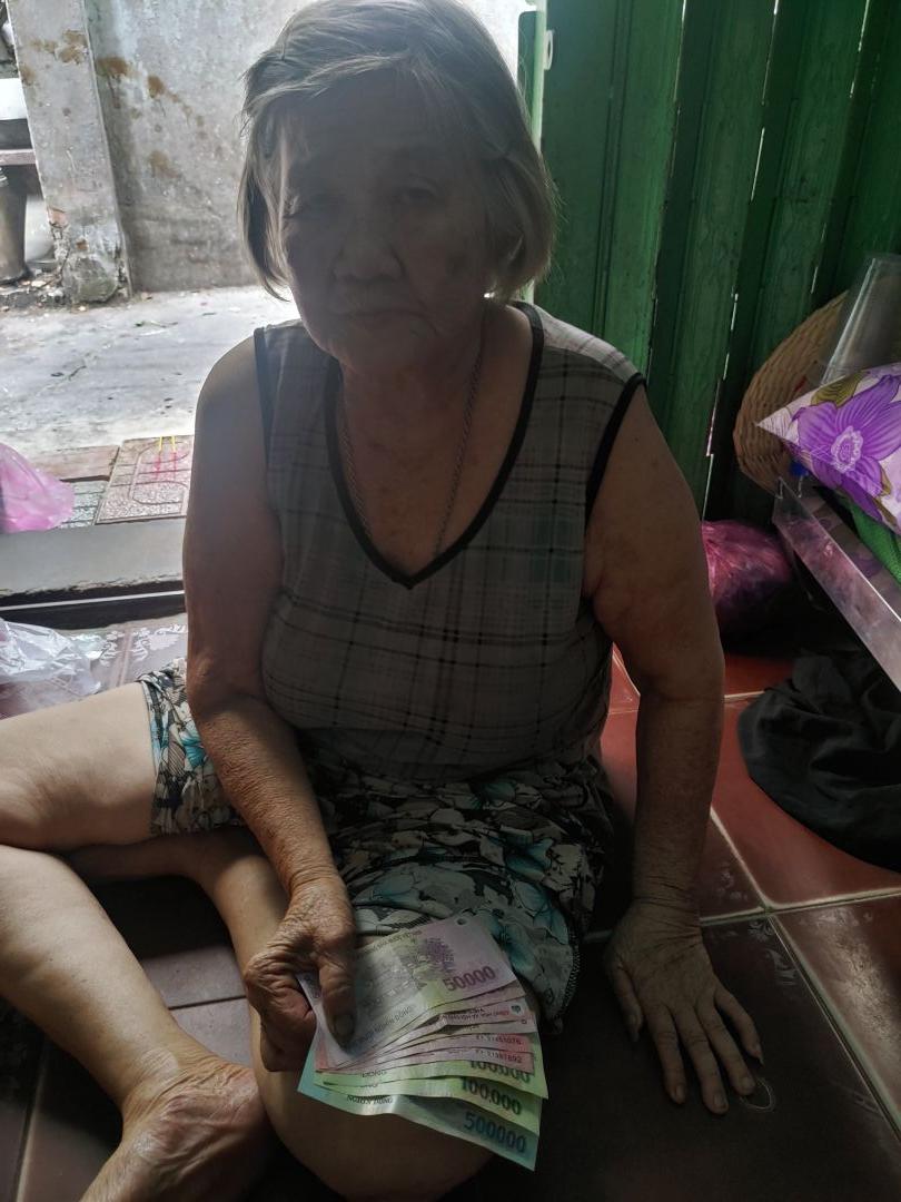 Nghe thông tin từ bà và hàng xóm, nhà của bà đang ở đã bán lại cho một chủ nhà cạnh bên, thấy bà 1 thân 1 mình nên họ cho bà ở nhờ, tiền bán căn nhà thì đã đưa hết cho con gái ( con gái bà ở Đài Loan về VN hồi khoảng tháng 5). Bà nói còn 1 người con ở Mỹ Tho, đang có dự định chuyển về đó để sống cùng con, nếu về đó ở thì cũng giúp bà an ủi được tuổi già.