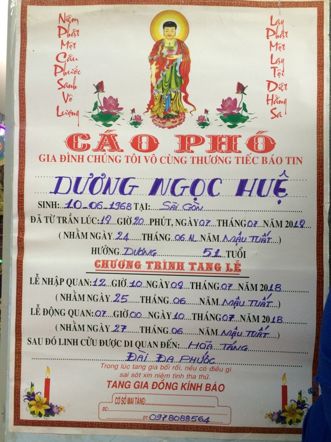 Cầu mong chị Huệ sớm siêu thoát.