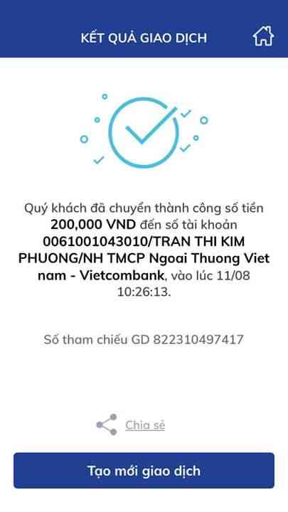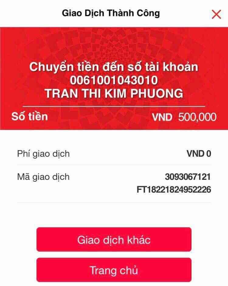 Chị Nguyễn Việt Hoa đã Ck 500.000 đ vào tk chị Thỏ Con rồi nhưng quên ghi nội dung.