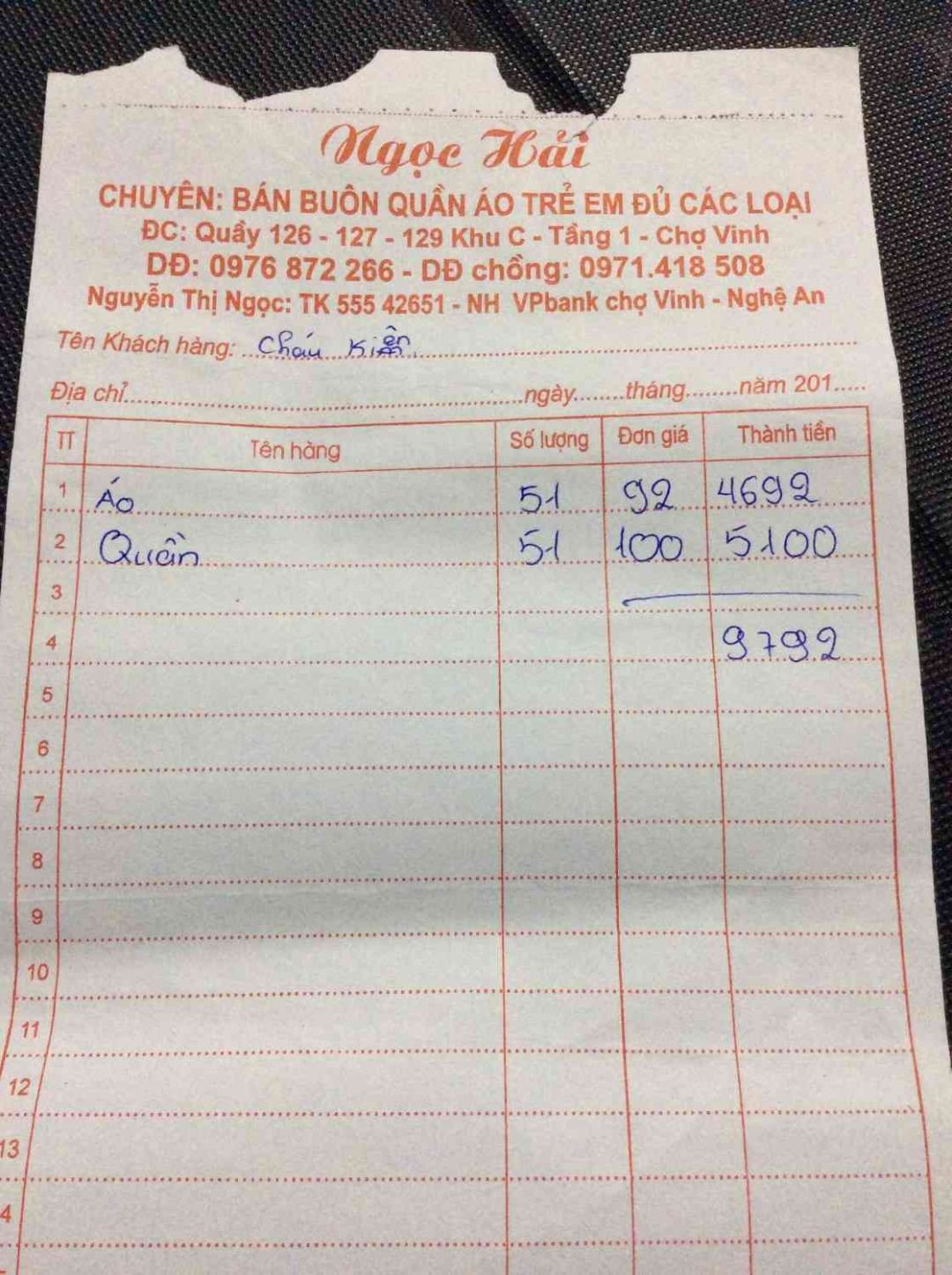 1. Quần áo : 9.792.000