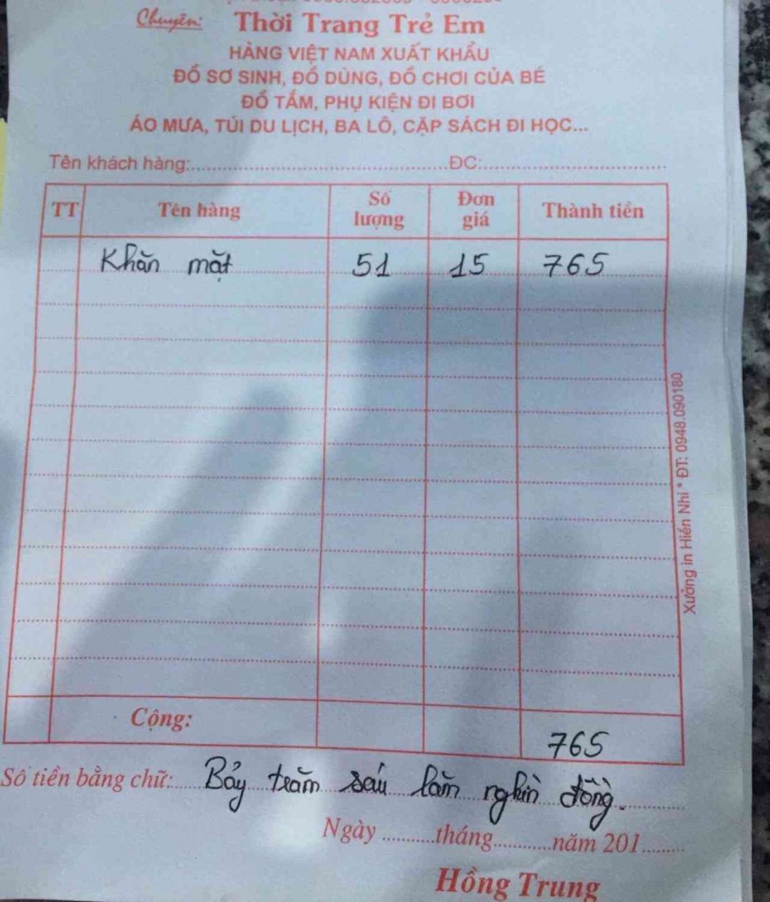 3.Khăn mặt : 765.000