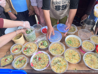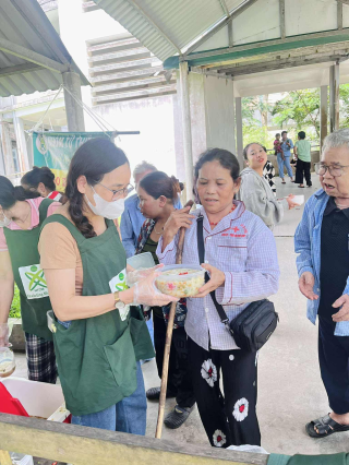 Đợt này  có các em học sinh tham gia phát cháo . Cảm ơn các em rất nhiều