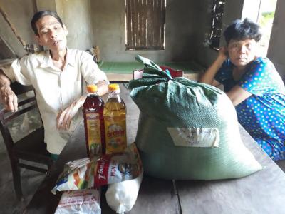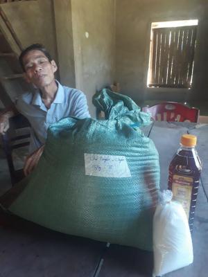 Xin chào cả nhà NTCM cùng quý MTQ.  Hôm nay em đã  trao quà tháng 6/21 của NTCM cùng quý MTQ đến với gia đình chú Tuyển gồm ( 15kg gạo và nhu yếu phẩm ( nước mắm và đường)). Gia đình chú Tuyển rất vui và gửi lời cảm ơn nhiều đến cả nhà NTCM cùng quý MTQ ạ.