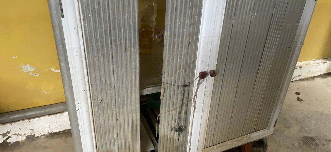 (Tủ cũ bằng nhôm rất cập xệ và không ngăn được côn trùng vì khe lá nhôm hở)