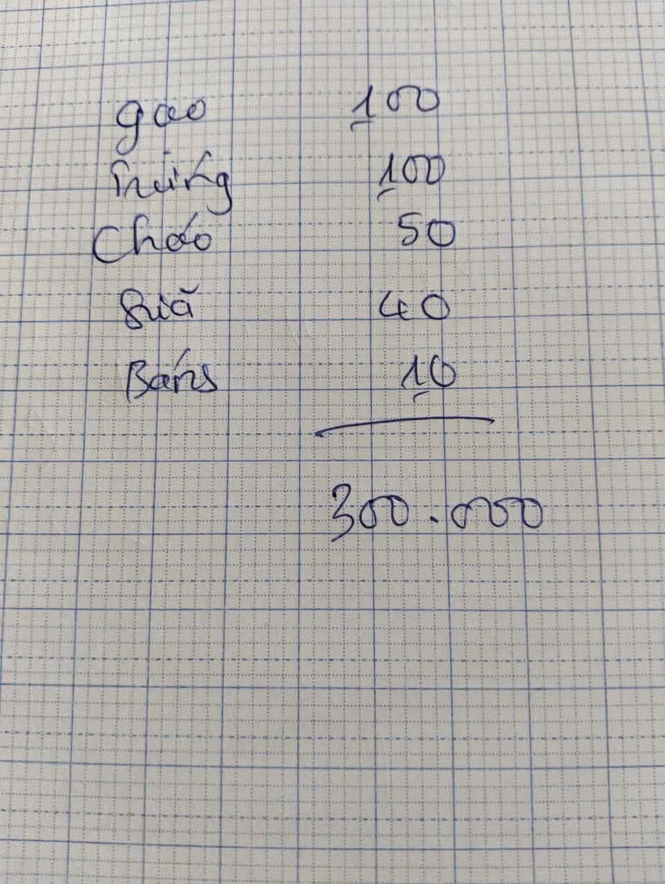 Gồm: gạo 100.000 đ