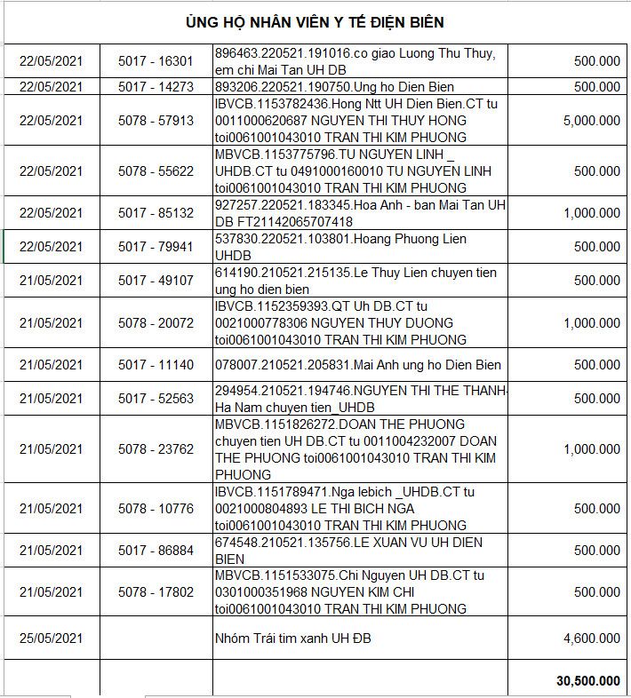 Em xin báo cáo cả nhà , em đã hoàn thành nhiệm vụ với Điện Biên rồi ạ. Hàng đi 19.00 ngày thứ 4 26/5 thì 0 giờ đêm ngày 27/5 Điện Biên ngừng phương tiện vận tải công cộng. Hàng hóa của NTCM đã kịp đến với Anh chị em NVYT tại Điện Biên