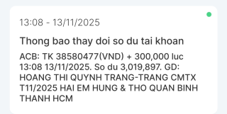@ Anh Banbe6x: Bạn Trúc chuyển nhầm số tiền CMTX 475.000đ vào quỹ, anh 6x điều phối chuyển 475k này vào tk em Thọ giùm em luôn nhé. Thanks anh.