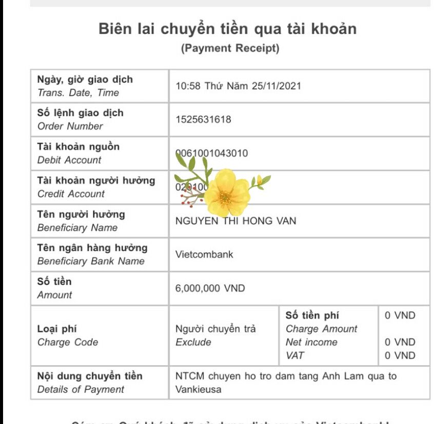 Trước mắt chúng ta chuyển 6,000,000₫ tới Vânkiêusa để các bạn khu vực Hà Tĩnh kịp thời trao tiền hỗ trợ đám tang anh Lâm.