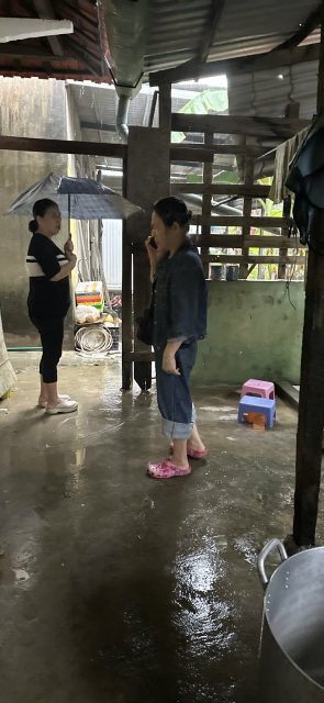 Nhà các thành viên không thể tổ chức nấu tạm vì điều kiện hoặc vì cũng ngập trong nước vừa xong.