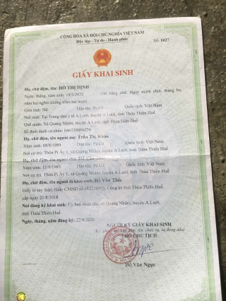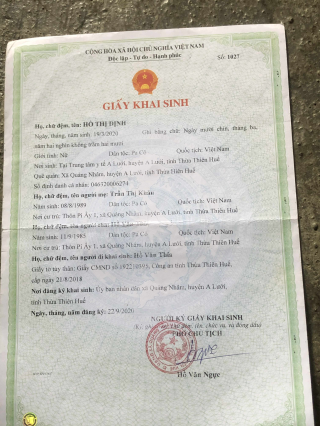Em tên là Hồ Thị Hiêm- hiện trú tại Thôn Pi Ây 1, xã A Lưới 2, Huế.