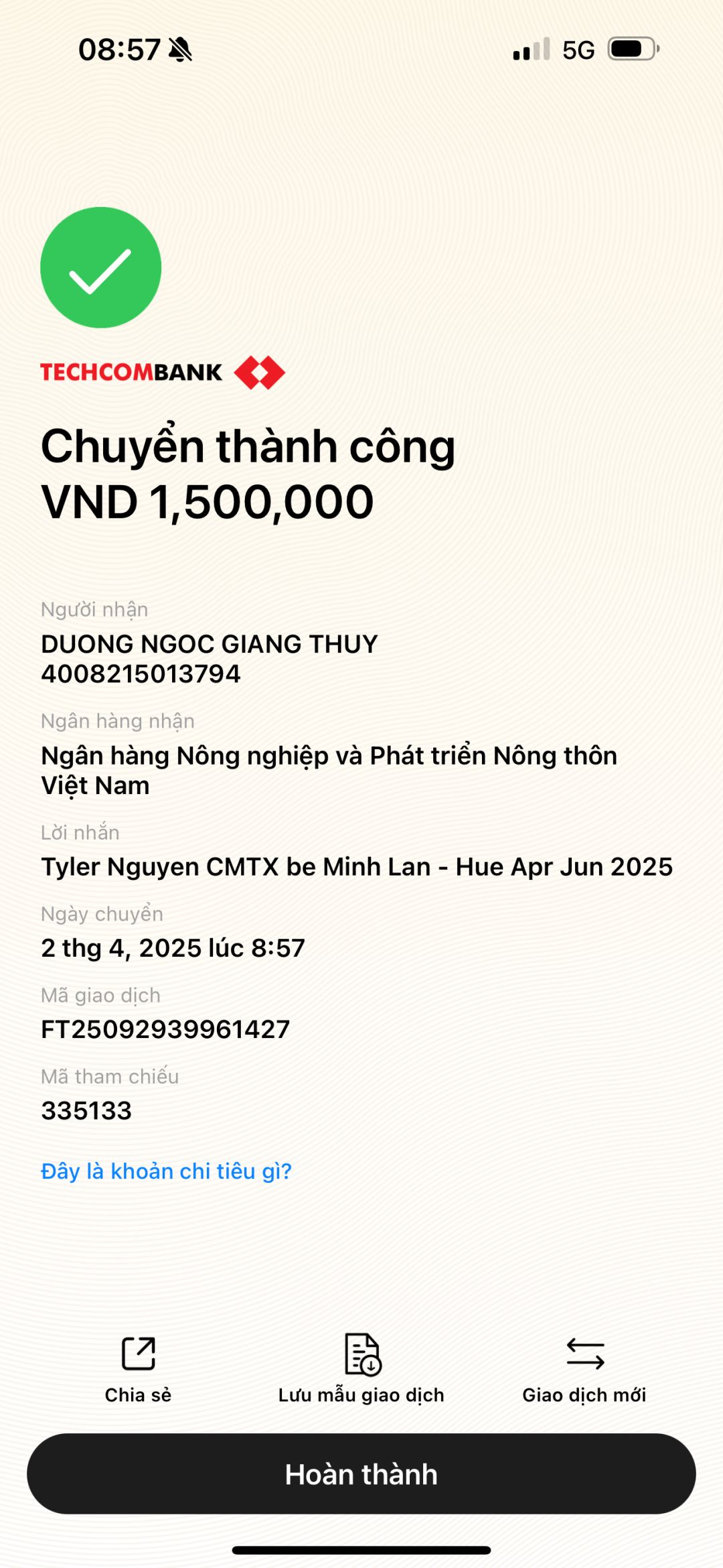 . Số tiền CMTX Q1/2025 đã được chuyển khoản.