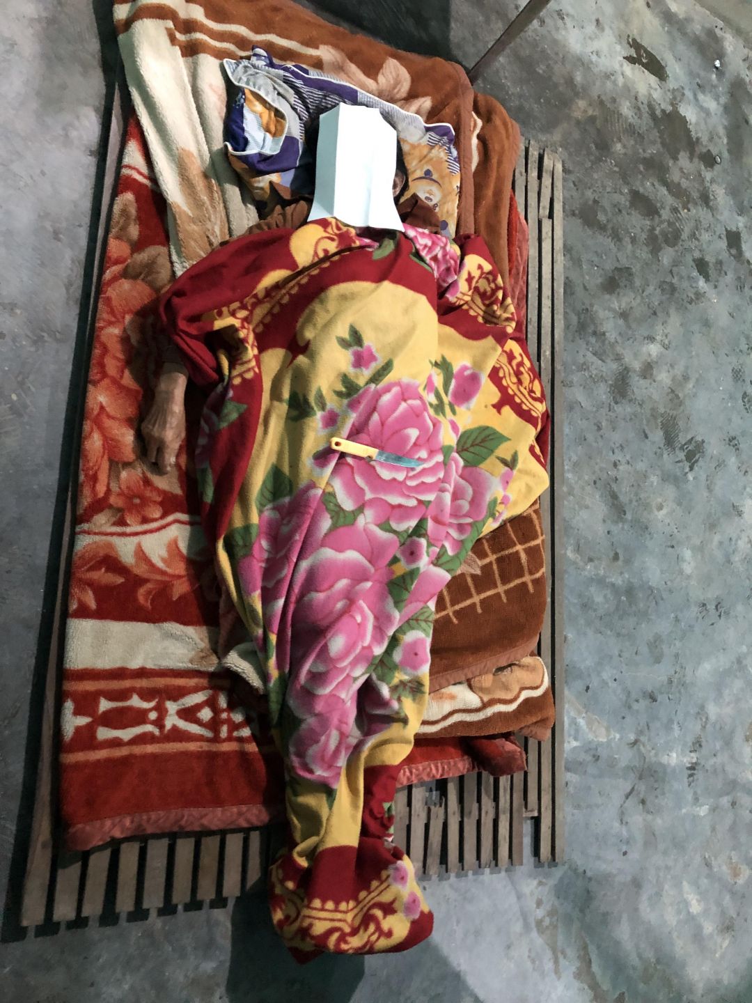 Trong nhà lụp xụp không có gì đáng giá. Nhà không có giấy tờ, không có trong danh hộ dân cư, kể cả cái hòm cho hộ nghèo chính quyền cũng chịu vì không có danh sách.