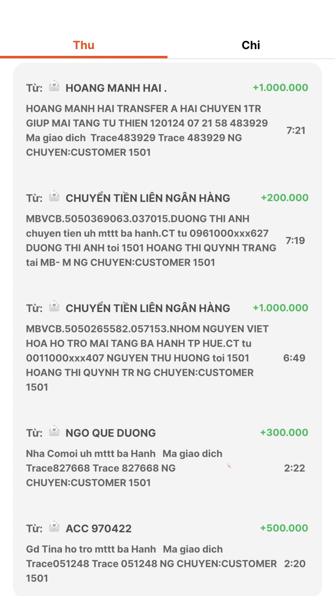 @trangvitgioi ơi ! Em chuyển toàn bộ số tiền cả nhà ủng hộ cho đám tang của bác Hạnh cho đến thời điểm này tới @Khánh Ly dùm nhé.