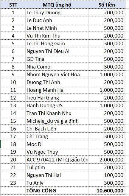 Cập Nhật ủng hộ đến 7h21 phút sáng nay trên quỹ nhóm: