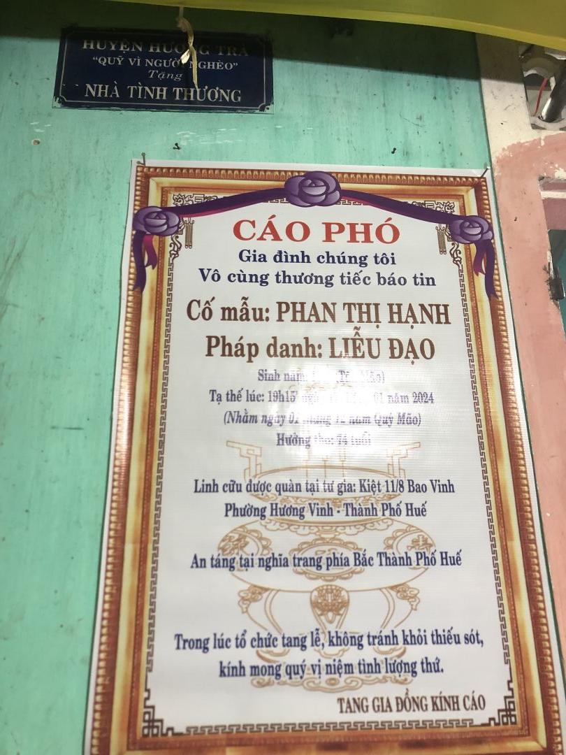 Tác giả Chủ đề: Huế - Bà Trần Thị Hạnh cần hỗ trợ mai táng  (Đã xem 3531 lần)