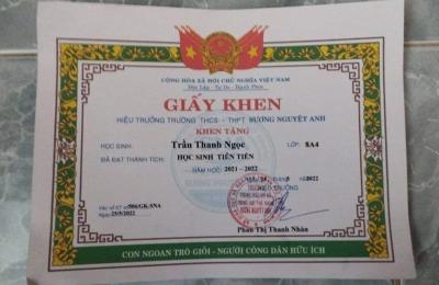 Em là Tâm chị của bé Thanh Ngọc! Em đã nhận được tiền hỗ trợ tháng 2-3 rồi ạ! Tình hình học tập của bé đã tốt hơn và kết quả là bé Thanh Ngọc đã đạt học sinh Khá hạng 19 ở lớp. Nhờ sự hỗ trợ của các anh/chị nên nhà e đã khá hơn nhiều. Em xin thay mặt gia đình, cảm ơn anh/ chị. Chúc anh/chị nhiều sức khoẻ và niềm vui trong cuộc sống!