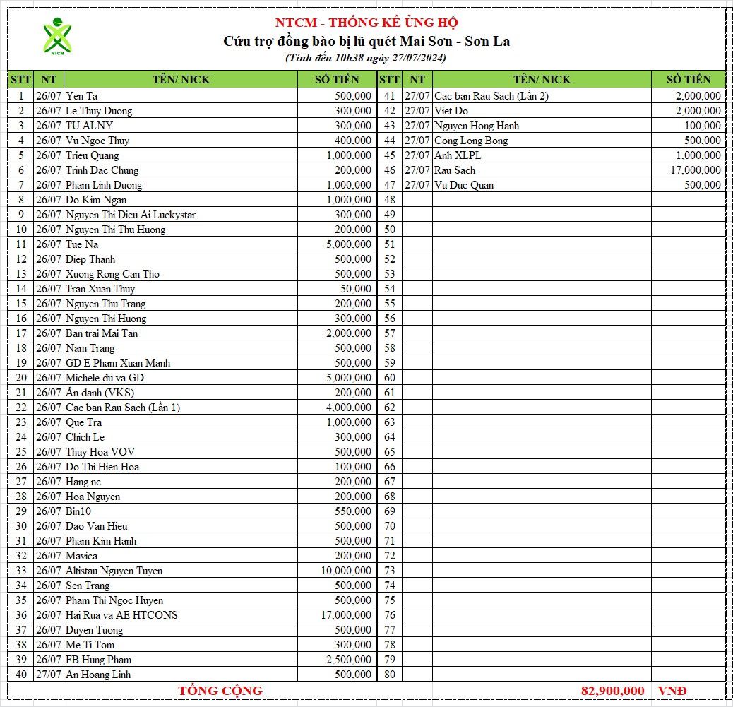 Em xin gửi Thống kê ủng hộ cứu trợ Sơn La.