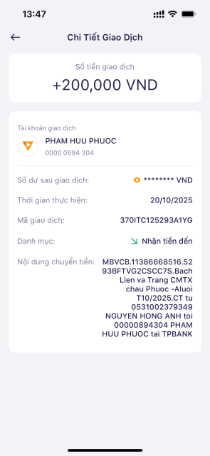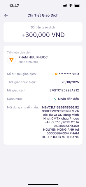 Cháu xin xác nhận đã nhận được tiền cmtx t10/2025 200.000 đồng từ của cô Trang và Bạch Liên, và 300.000 đồng từ Michele Du và GD cùng Minh Nhật ạ!.