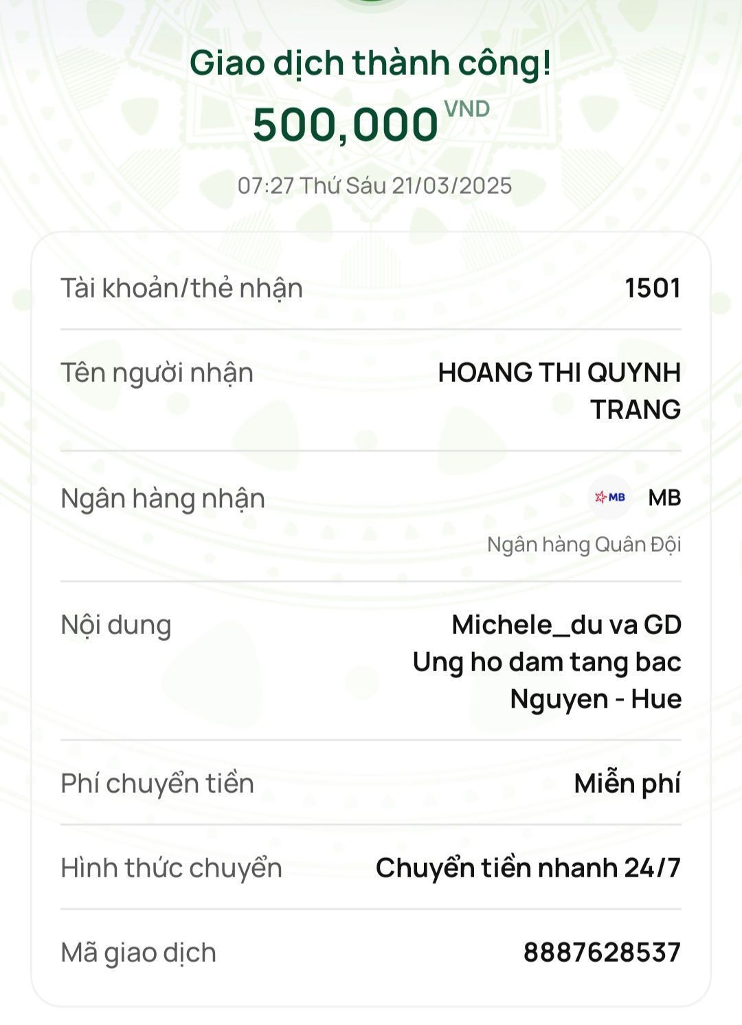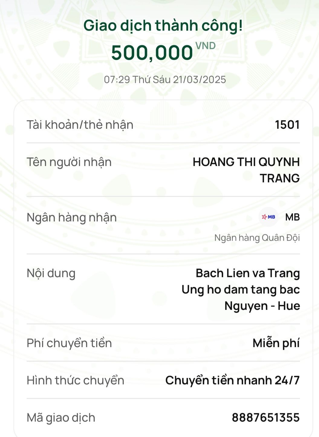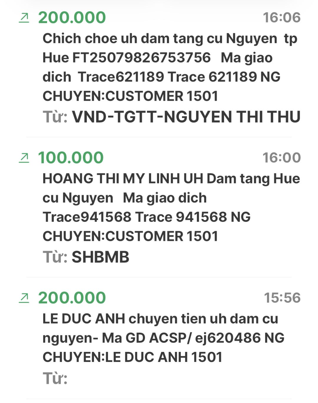 Toàn bộ số tiền mọi người gởi trợ tang cụ Nguyên đã được chuyển về tk 1501.