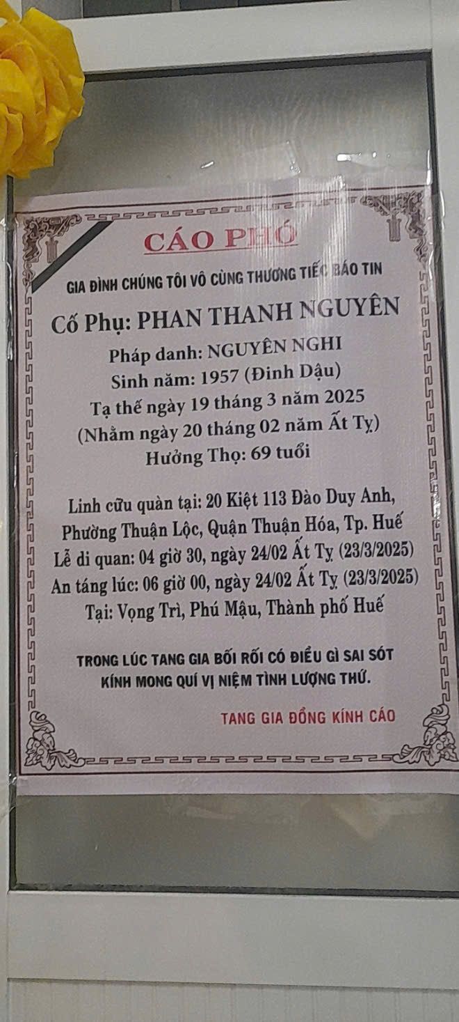 @banbe6x : Chương trình tang lễ chi tiết ở cáo phó đã đưa bài trước đó rồi anh.