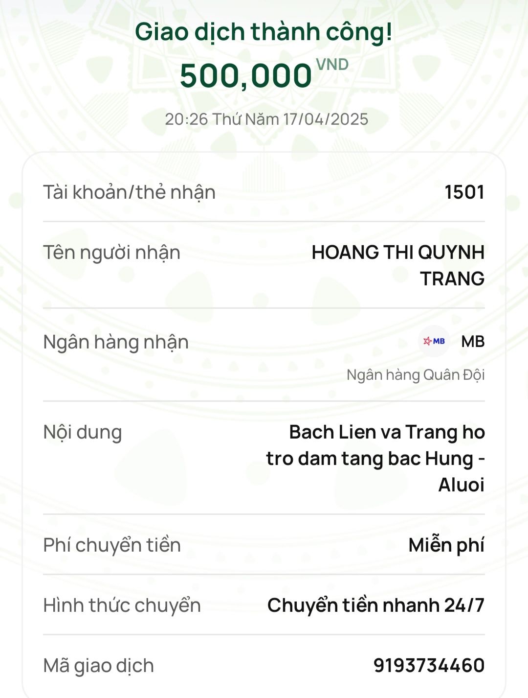 Trang ủng hộ đám tang của bác Hùng 300,000₫