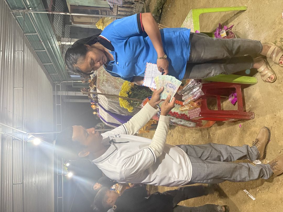 Trong đó: Vợ chồng em Pi Riu Thế Kêr Thị Iếp ủng hộ hiển vật hoa viếng đám tang trị giá 150k