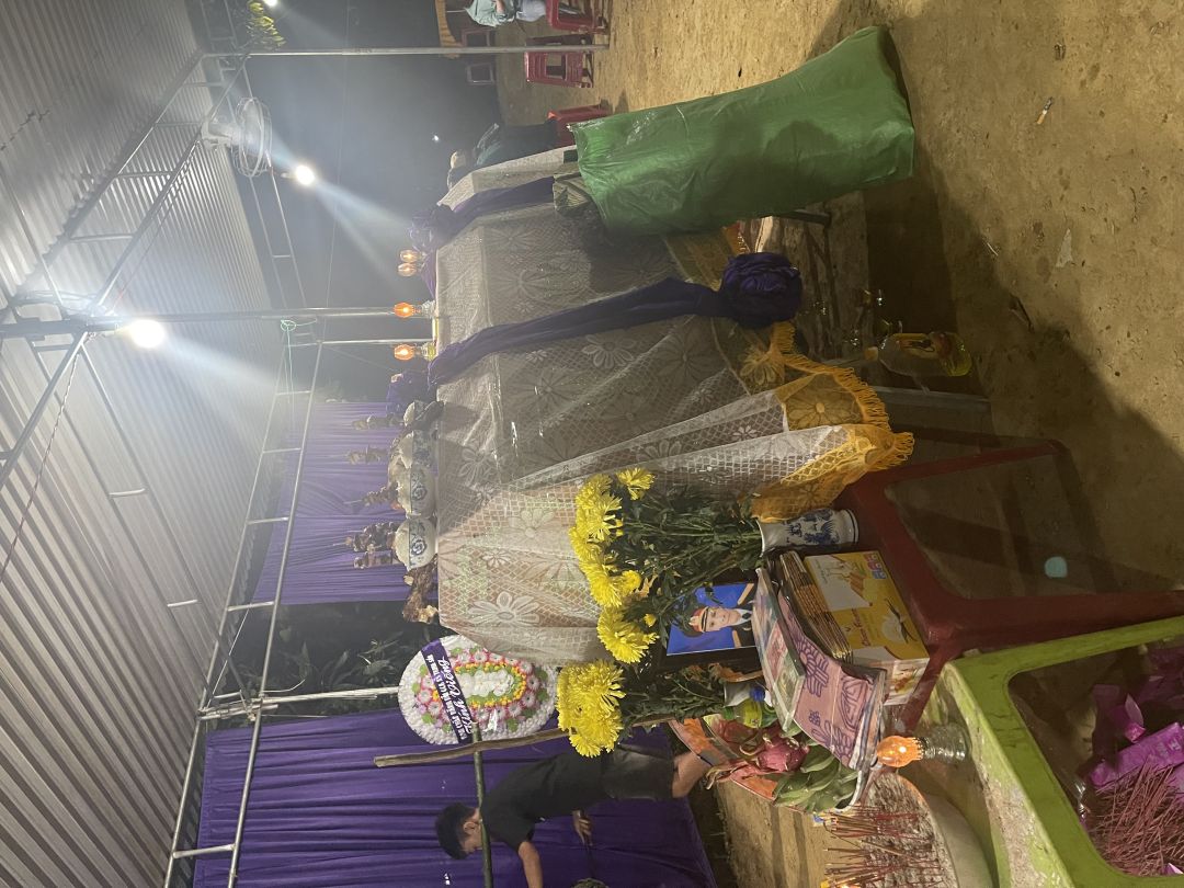 Hiện tại quan tài đang để trước nhà, và Bác Hùng vẫn còn để trong nhà chưa đưa vào quan tài được.