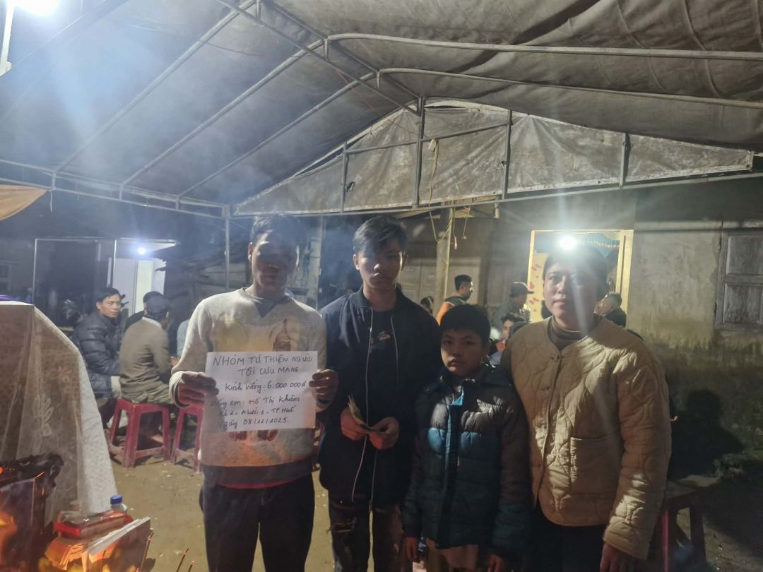 Em Hồ Thị Khăm sinh năm 1993, nơi ở hiện tại: Thôn Kê 2 (xã Hồng Thủy cũ) Xã A Lưới 1, TP Huế. Chồng em tên: Hồ Văn Chàng, sinh năm 1993. Hoàn cảnh gia đình rất khó khăn em bị bệnh ung thư, suy thận 3 năm nay, chồng phải làm thuê làm mướn lo chữa bệnh cho e và nuôi 2 đứa con nhỏ, đứa đầu sinh năm 2010, đứa thứ hai sinh năm 2015, việc làm không ổn định lại thêm vợ đau ốm nên khó khăn chồng chất khó khăn. Sau bao ngày chạy chữa chiều nay vào lúc 13g ngày 07/12/2025 em đã trút hơi thở cuối cùng để lại chồng và hai đứa con thơ . Gia đình khó khăn không có kinh phí lo mai táng cho em, xin cúi đầu nhờ quý anh chị em, các mạnh thường quân thương tình giúp đỡ lo cho em hậu sự được trọn vẹn. Số đt liên lạc anh Hồ Văn Chàng  0974707294