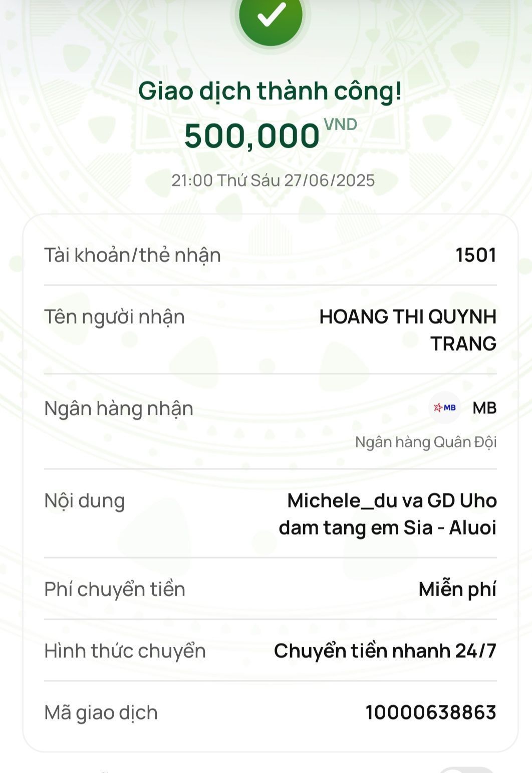 Michele_du và Gia đình ủng hộ đám tang của em Sỉa 500,000₫.