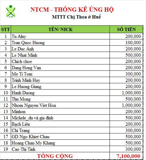 Loannguyen cập nhật ủng hộ MTTT chị Thoa đến hiện tại nhé.