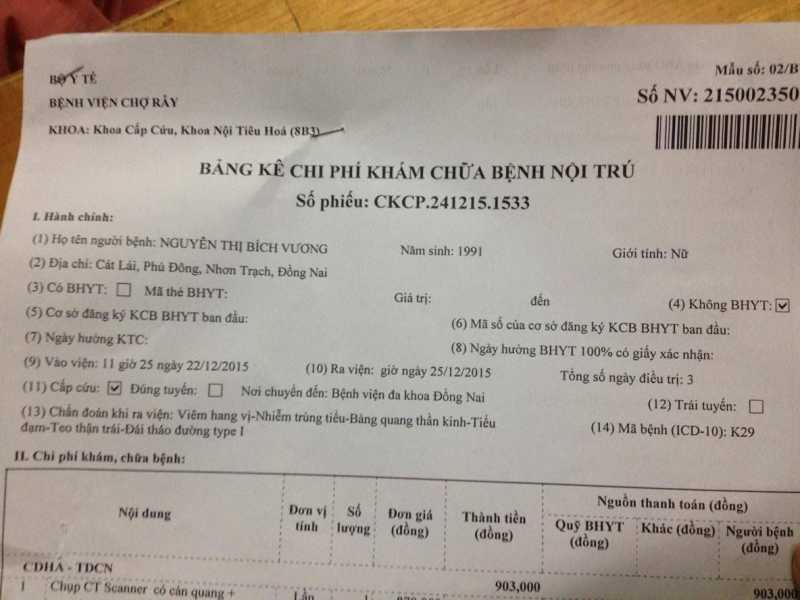 -Lúc trước chị nằm ở BV đa khoa Đồng Nai, nhưng do không điều trị được nên được chuyển đến BV Chợ Rẫy. Ở đây, các bác sĩ chuẩn đoán chị bị: Viêm hang vị, nhiễm Trùng tiểu, bàng quang thần kinh, tiểu đạm, teo thận trái, đái tháo đường. Tình trạng: đau tùy lúc, từng con dữ dội ở bụng và lưng