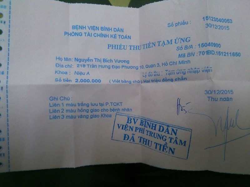 Chiều hôm qua, mình đã đến BV để đóng tạm ứng phẫu thuật cho Vương, theo bác sĩ thì ca phẫu thuật có thể sẽ bắt đầu vào tuần sau.