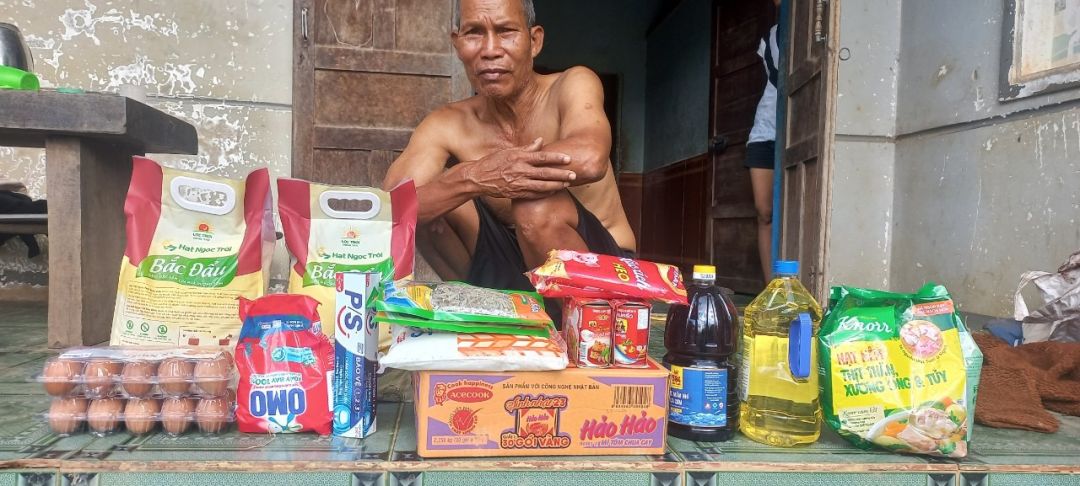 Các bé nhà chị H nghép sau khi mẹ mất đã về ở với ông bà ngoại, lúc anh Tâm mang quà tới là tụi nhỏ khg có ở nhà ạ! Đây là ông ngoại nhận giúp các bé ạ!