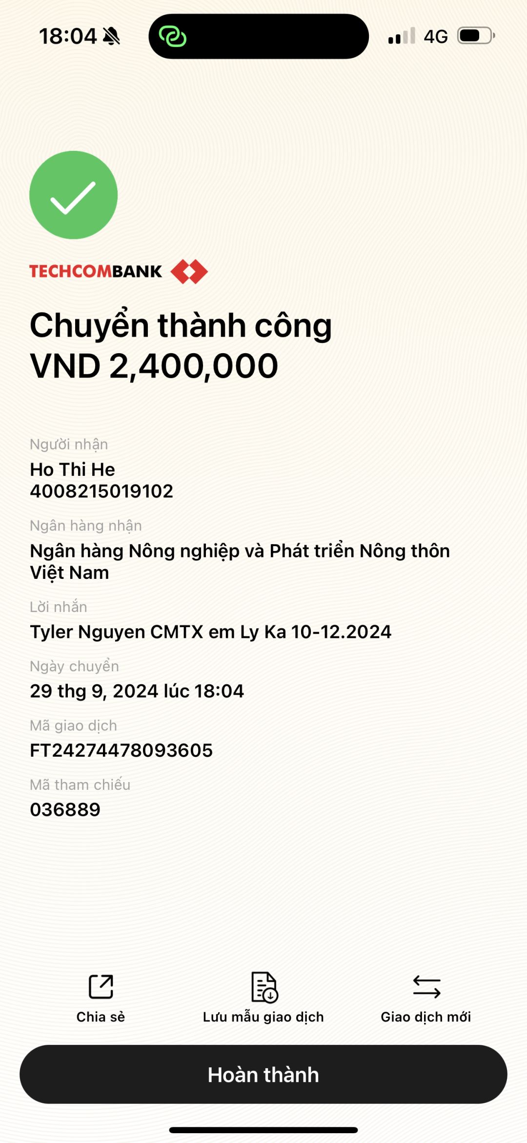 Chào các mạnh thường quân Em là Hồ Thị Hè em đã nhận được tiền CMTX quý 4,  tháng 10-11-12/2024 là 2.4000.000 nghìn đồng. Em cảm ơn anh Tyler Nguyễn rất nhiều ạ.