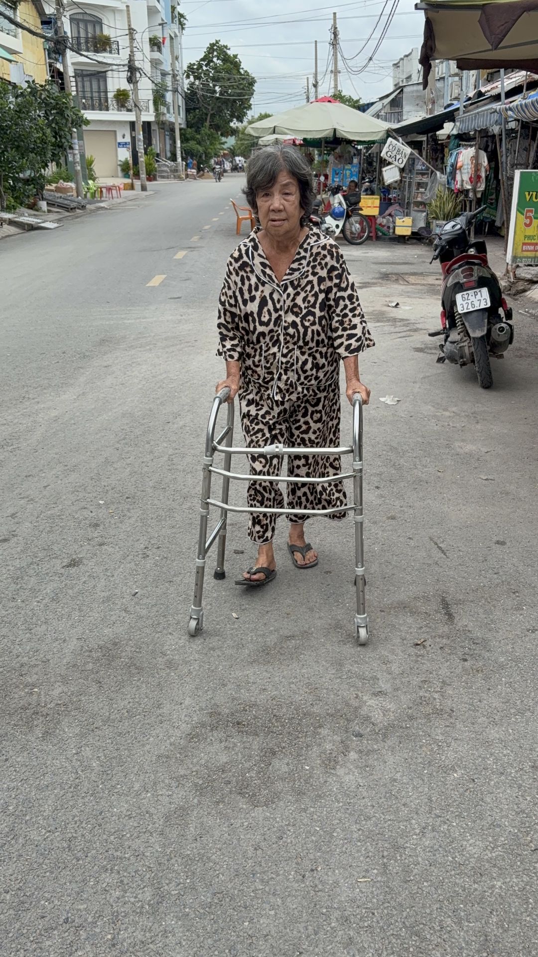Qua cô Năm Dừa- đt 0765 624 731- mình được biết cô Tiêu Thuý Huệ sinh năm 1959,  sống một mình, bị đau khớp, đi lại rất khó khăn. Chồng chết, có một cô con gái bị ung thư nhưng không sống cùng cô. Hàng ngày cô đi xin ở chùa Hưng Long Tự, bữa có bữa không.