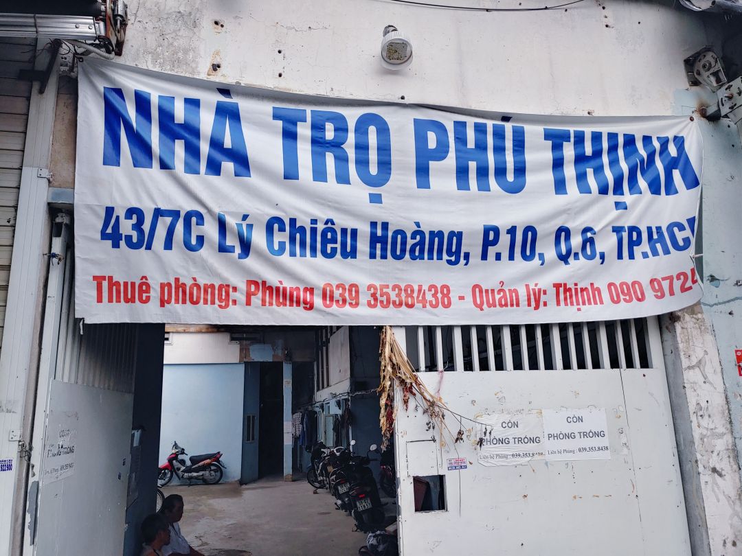 Địa chỉ nhà trọ: 43/7C Lý Chiêu Hoàng, P10, Q6.